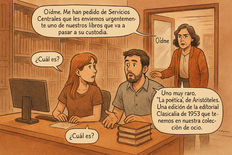 —Uno molto raro, la Poetica di Aristotele. Un'edizione della casa editrice Clasicalia del 1953 che abbiamo nella nostra collezione per il tempo libero.